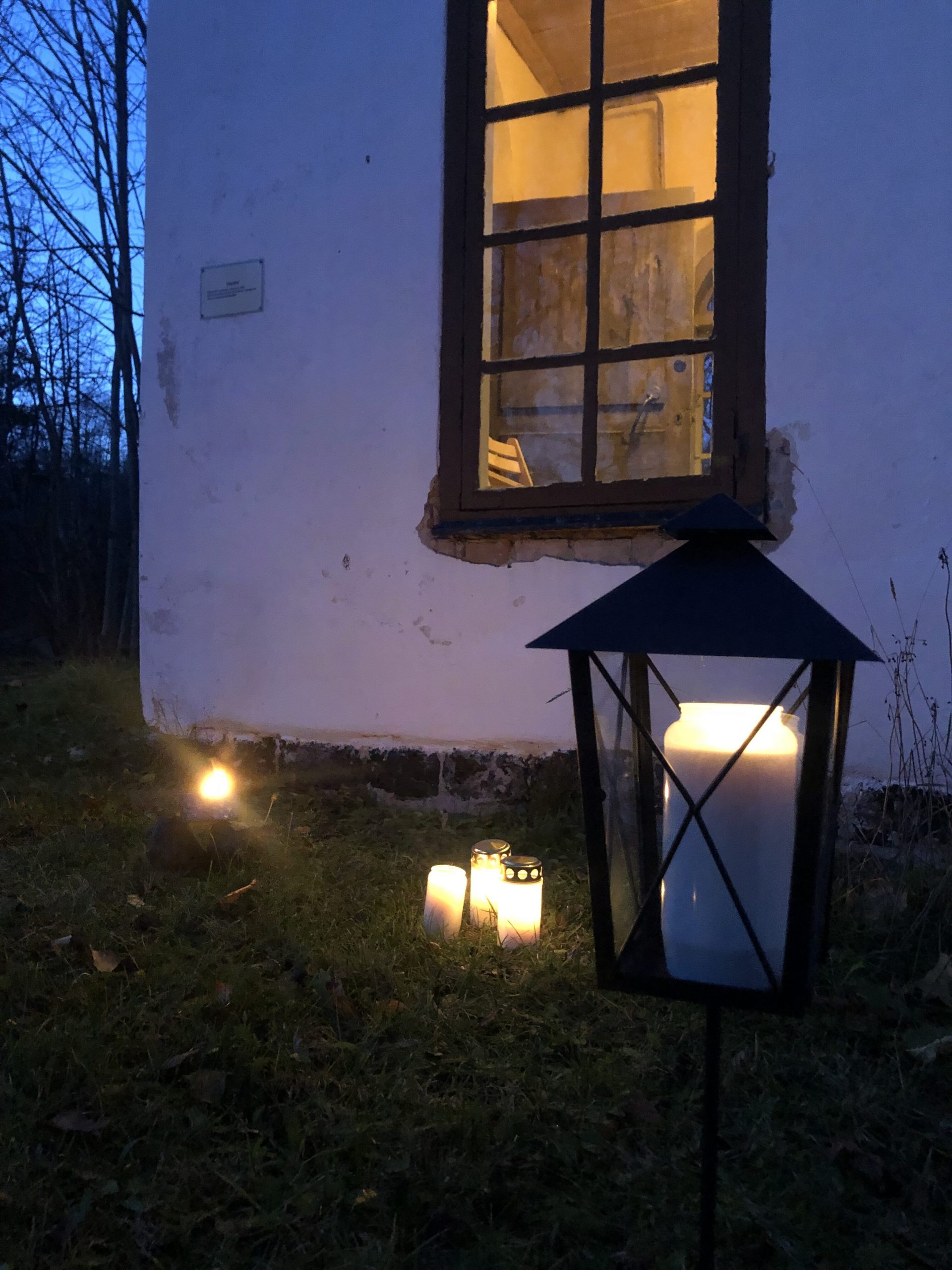 På kapellets södra sida är folk välkomna att tända gravljus till minne av nära och kära som är avlidna.
