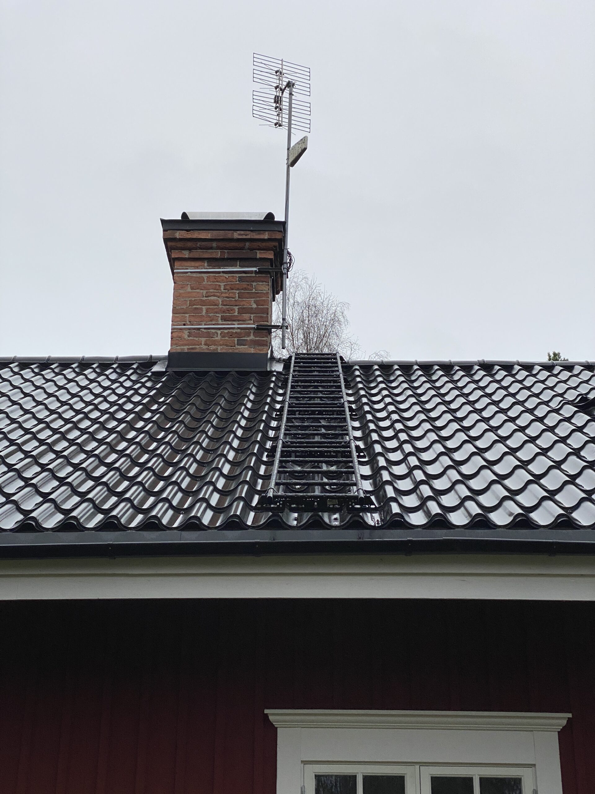 Sedan några veckor har Kungsgården Långvinds ”gårdskarl” monterat ny stege på taket, så sotaren kan nå skorstenarna.